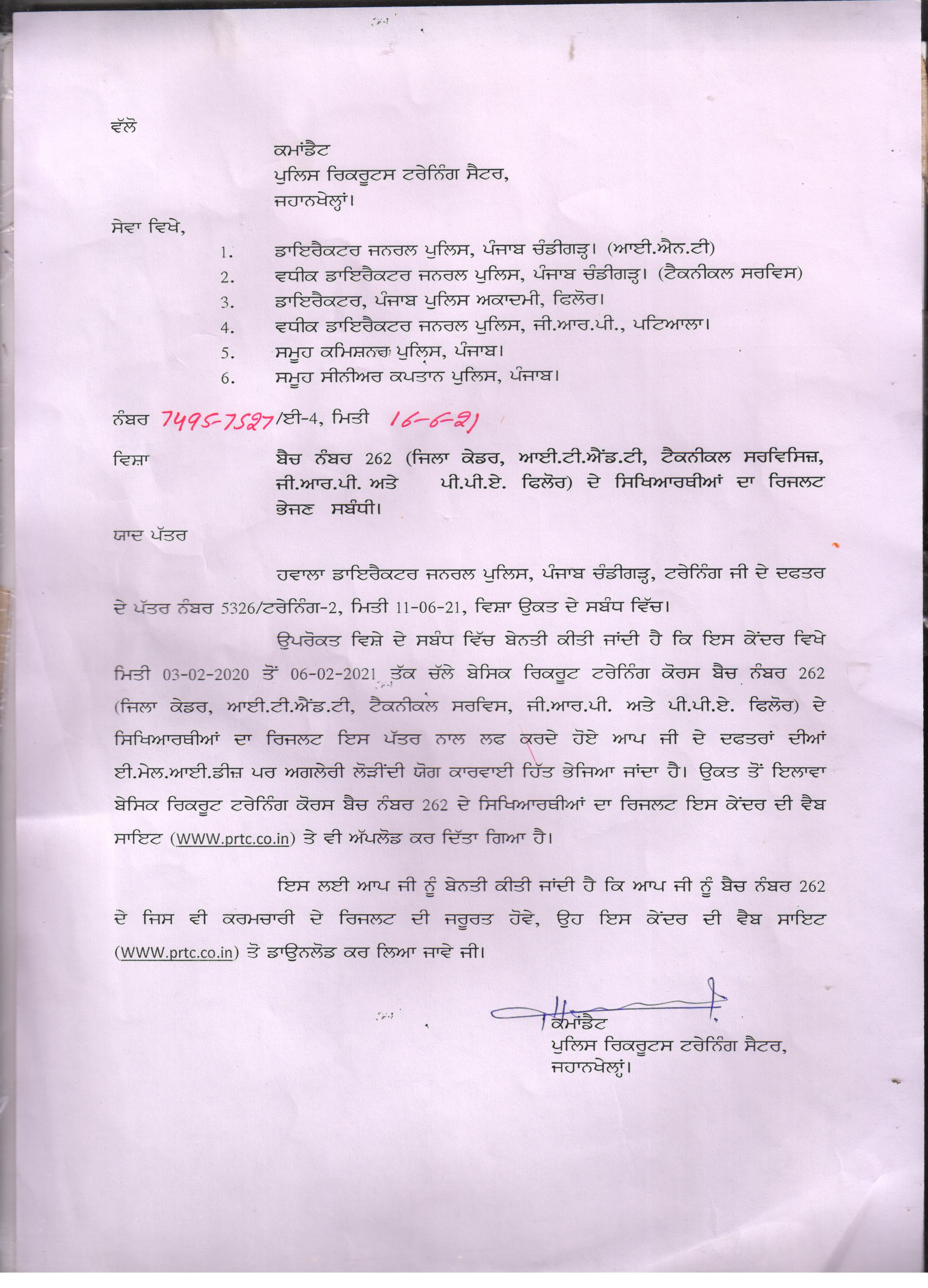 Result B.No.258 Distt (IT&T)
